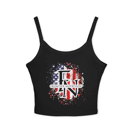 Women's Spaghetti Strap Tank Top with Frontier Nutrition Design, Summer Top, Casual Wear, Workout Tank, Fourth of July Apparel