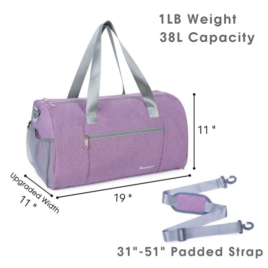 Sports Gym Bag with Wet Pocket & Shoe Compartment - Purple