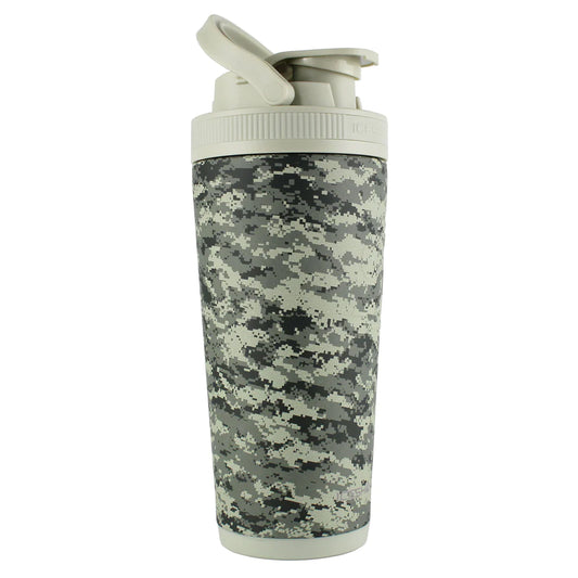The 26oz. Shaker features a patented, noise-free twist on agitator that is designed to blend protein powders and work as a strainer to ensure a perfect drink every time. Constructed from premium, kitchen-grade stainless steel, the 26oz. Stainless Steel Bottle will not absorb odors and is double wall vacuum insulated to keep your drinks cold for hours and prevent condensation from building up on the outside of the bottle. For easy measuring, the 26oz. Shaker is equipped with internal measurement lines that lets you add the perfect amount of liquid to mix up any tasty concoction! The silicone base prevents it from sliding, chipping, and makes the cup less noisy when setting it down. For added convenience, it fits in all standard size cup holders so that you can take your 26oz. Shaker anywhere you go! Stop dealing with smelly plastic bottles that don't keep your drinks cold and shake things up with Ice Shaker's 26oz. Shaker!