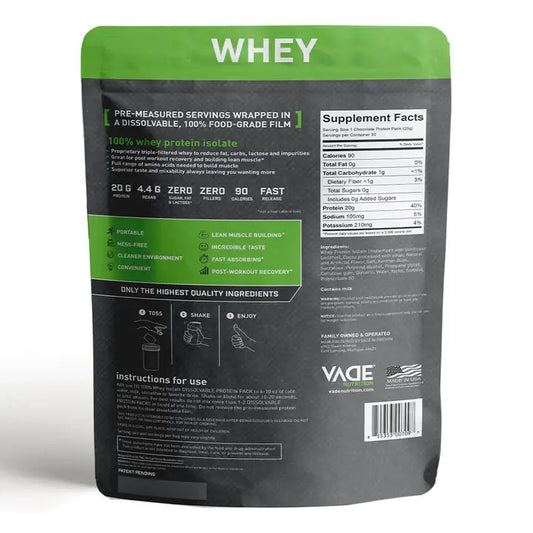 Vade Protein Packs Chocolate Milkshake - 100% Whey Isolate Protein: 30ct