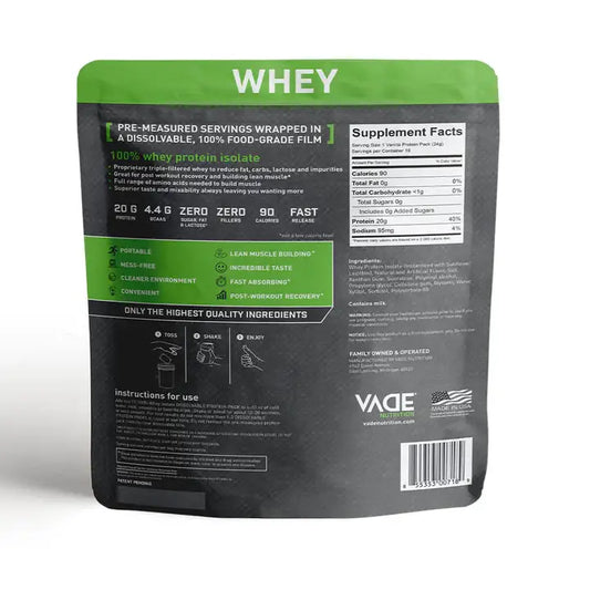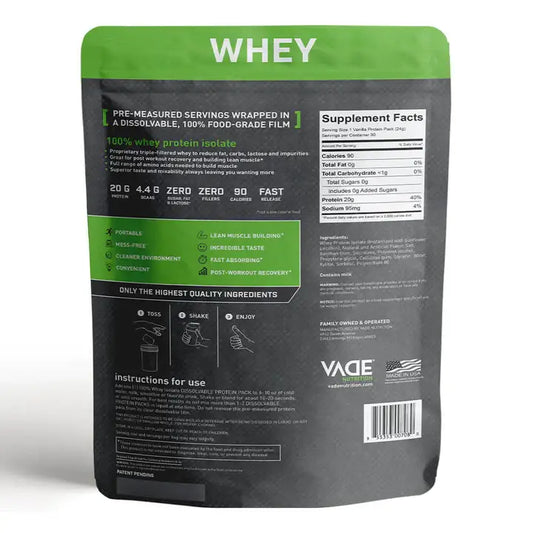 Vade Protein Packs Vanilla Milkshake - 100% Whey Isolate Protein: 30ct