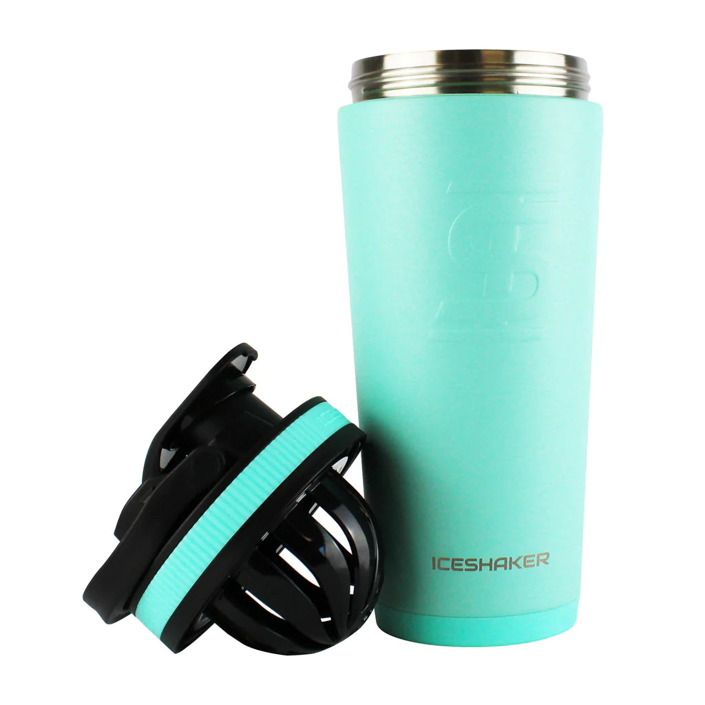 The 26oz. Shaker features a patented, noise-free twist on agitator that is designed to blend protein powders and work as a strainer to ensure a perfect drink every time. Constructed from premium, kitchen-grade stainless steel, the 26oz. Stainless Steel Bottle will not absorb odors and is double wall vacuum insulated to keep your drinks cold for hours and prevent condensation from building up on the outside of the bottle. For easy measuring, the 26oz. Shaker is equipped with internal measurement lines that lets your pour the perfect amount of liquid to mix up any tasty concoction. The silicone base prevents it from sliding, chipping, and makes the cup less noisy when setting it down. For added convenience, it fits in all standard size cup holders so that you can take your 26oz. Shaker anywhere you go! Stop dealing with smelly plastic bottles that don't keep your drinks cold and shake things up with Ice Shaker's 26oz. Shaker!