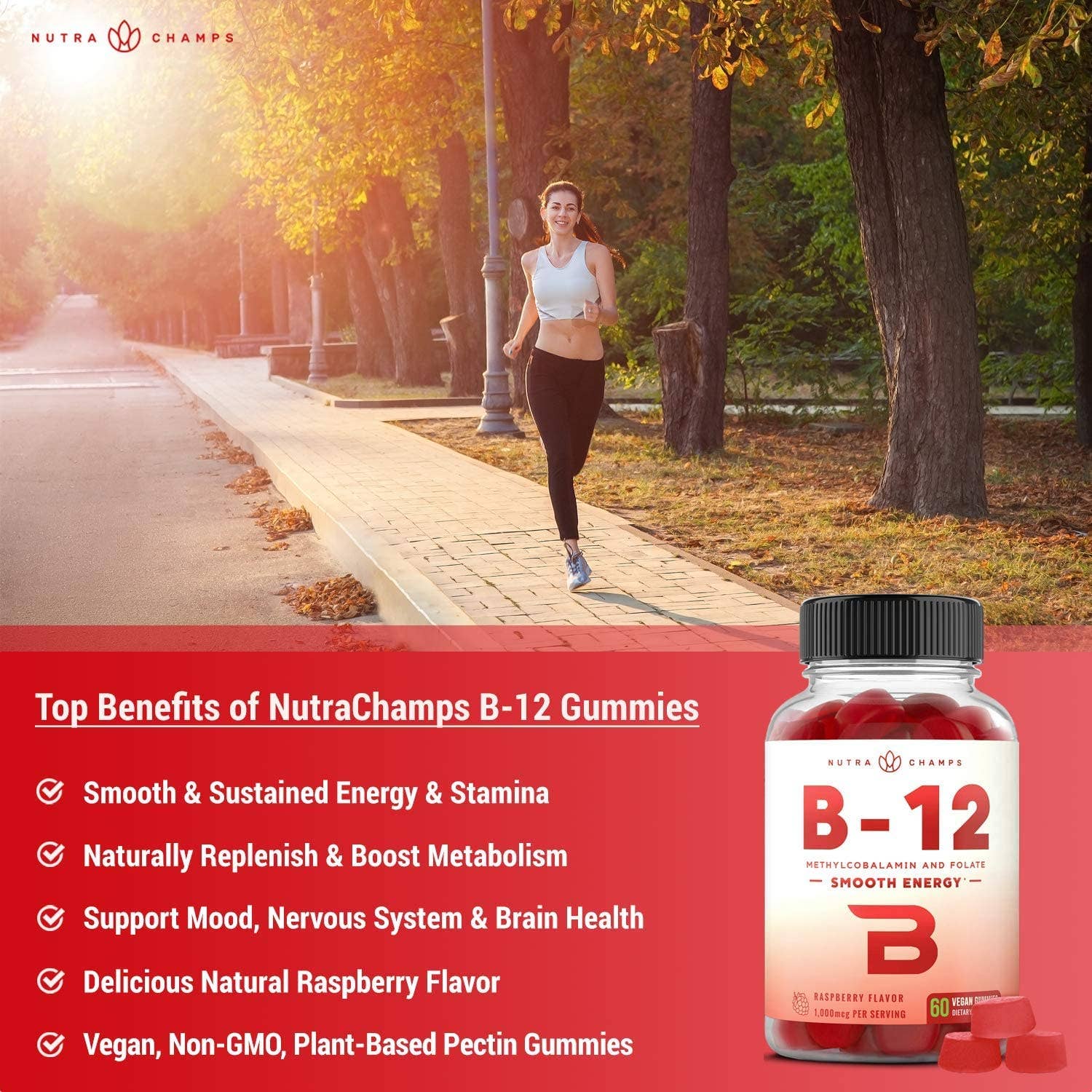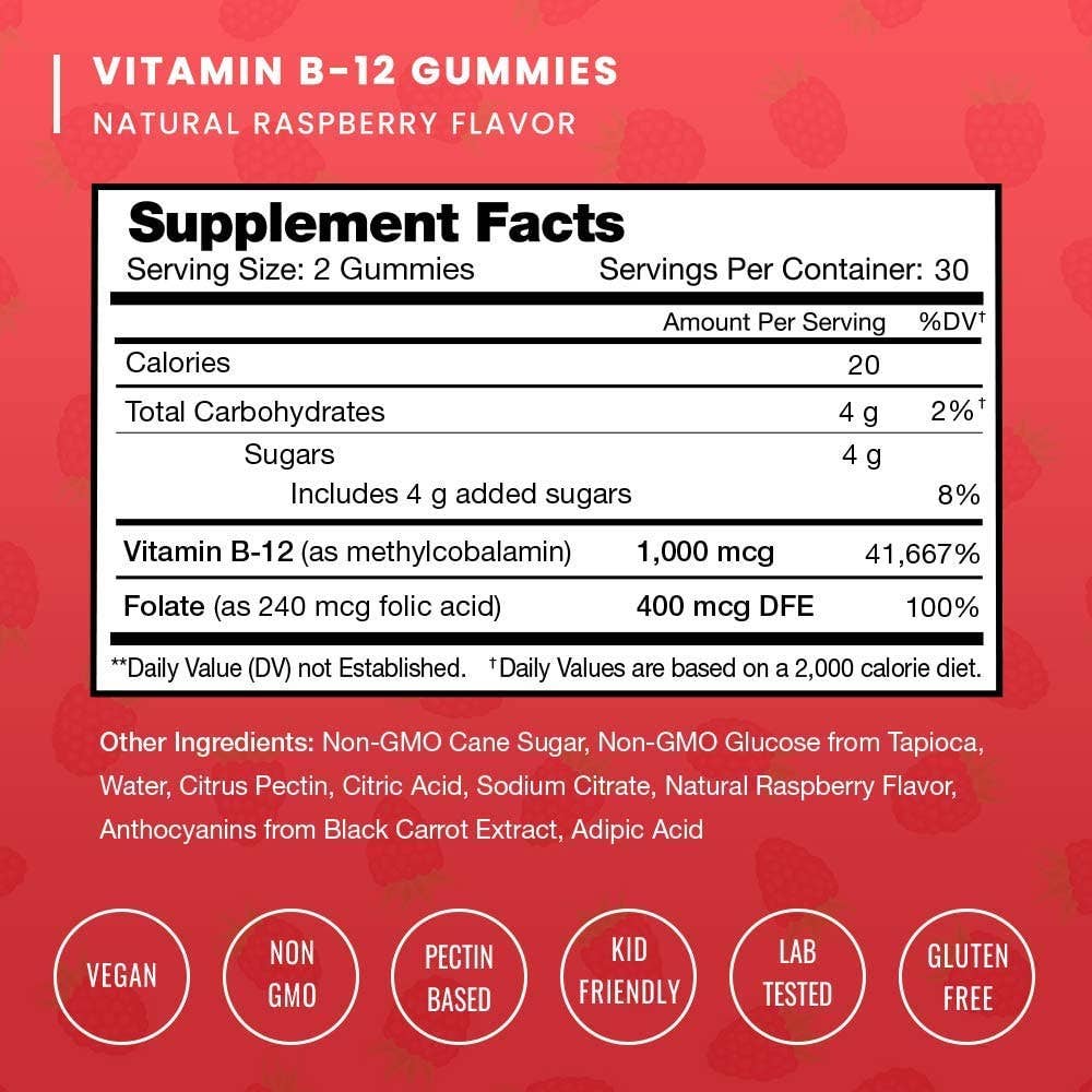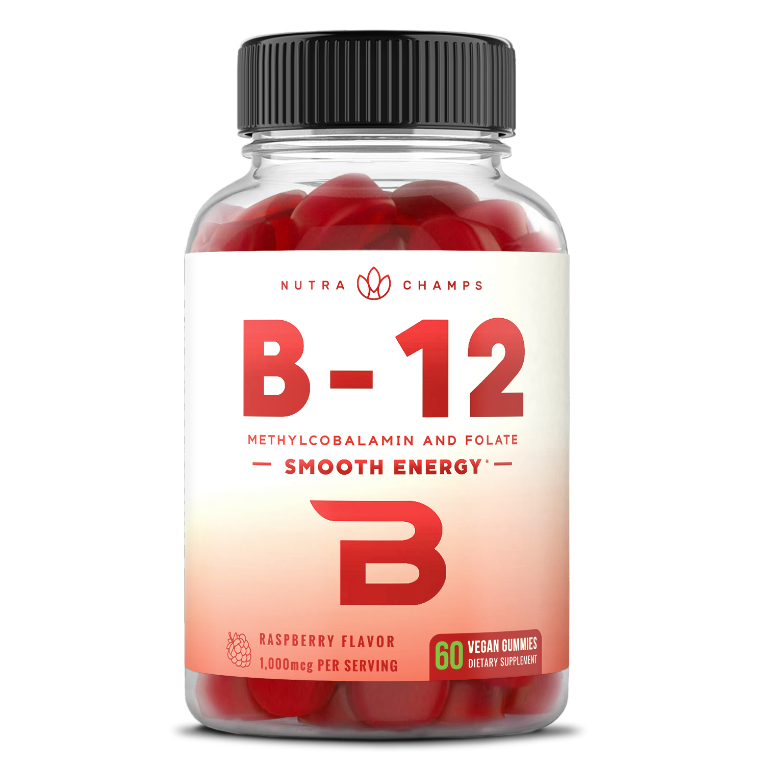 B12 enhanced with folate (vitamin b9) - nutrachamps b12 vegan gummies use the active form of vitamin b12 (methylcobalamin) so that your body can utilize it’s benefits right away. And with added folate, you’ll get another energy producing b vitamin in each gummy! Smooth energy - b12 can help provide you with a smooth flow of energy and focus to take on the day.. But not all forms of b12 are created equal...That’s why we only use methylcobalamin b12; it’s the easiest form for the body to digest, absorb, and utilize, meaning more bang for your buck (as well as body and brain). Yummy gummies! - Great benefits with a great taste! With a tasty natural berry flavor, these chewable gummies are perfect for children, women, and men.