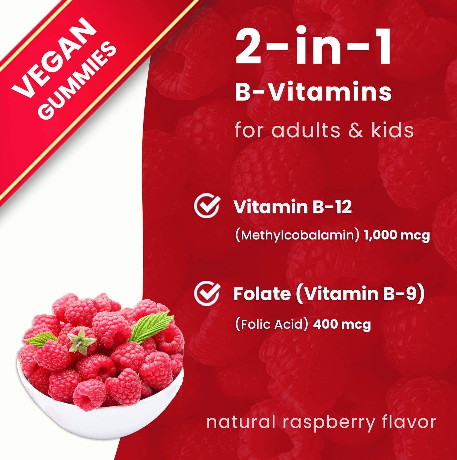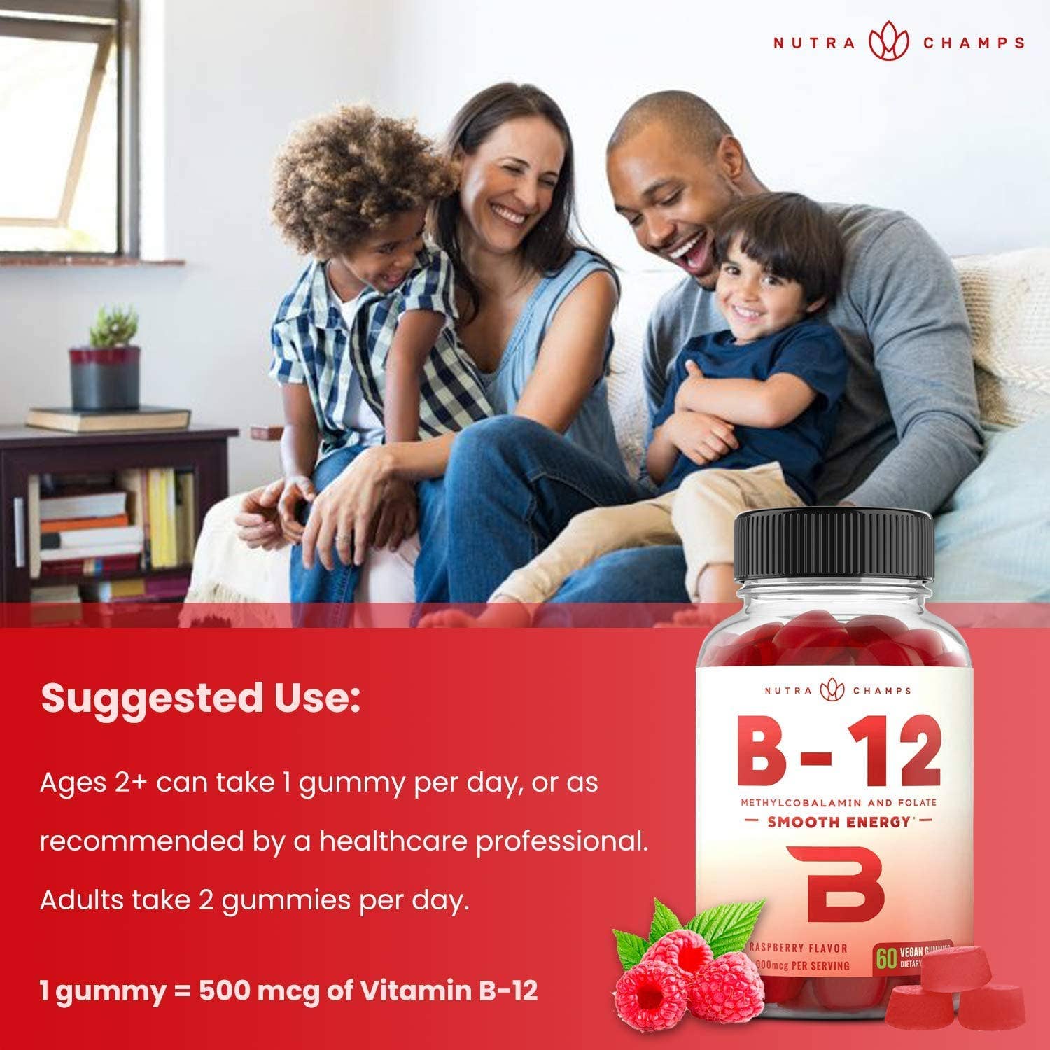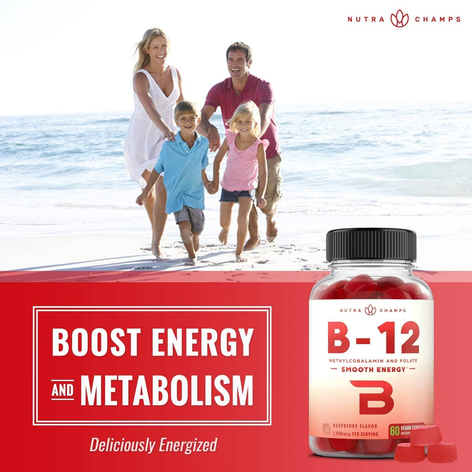 B12 enhanced with folate (vitamin b9) - nutrachamps b12 vegan gummies use the active form of vitamin b12 (methylcobalamin) so that your body can utilize it’s benefits right away. And with added folate, you’ll get another energy producing b vitamin in each gummy! Smooth energy - b12 can help provide you with a smooth flow of energy and focus to take on the day.. But not all forms of b12 are created equal...That’s why we only use methylcobalamin b12; it’s the easiest form for the body to digest, absorb, and utilize, meaning more bang for your buck (as well as body and brain). Yummy gummies! - Great benefits with a great taste! With a tasty natural berry flavor, these chewable gummies are perfect for children, women, and men.